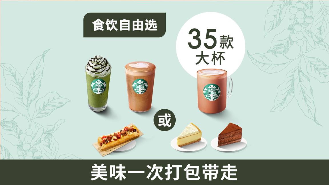 星巴克自由选3件套蛋糕星冰乐奶茶